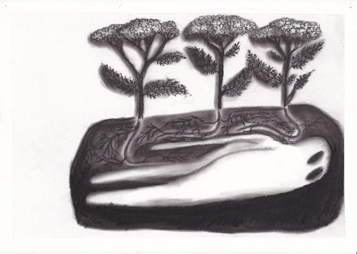 Isona minusta tulee siankärsamö, mustaliitu, 21×30 cm, 2023